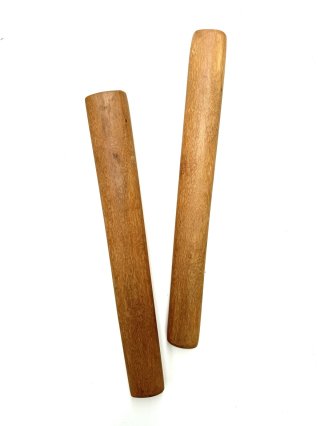 打ち手と受け手で形状が異なり、比較して細いスティックで平たい側を打ちますが、強く叩かずアイアンウッドの重さで落としていく様な鳴らし方が最終的に落ちつきました。